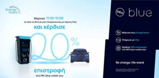 ΔΕΗ blue: 20% επιστροφή, για φόρτιση ηλεκτρικών οχημάτων στις μεσημεριανές «Energy Hours» σε συνεργασία με τη Visa