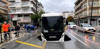 Άνοιξε η γη στη Θεσσαλονίκη και… ρούφηξε λεωφορείο