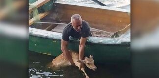 Ελάφι το έσκασε από τον Προφήτη Ηλία και έπεσε στην λίμνη...