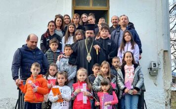 O Μητροπολίτης Καστοριάς με τα παιδιά και τους κατοίκους του Μελά