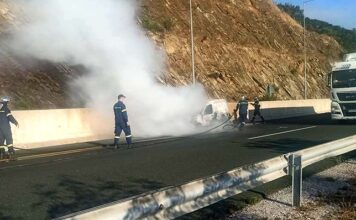 Όχημα τυλίχθηκε στις φλόγες στην Εγνατία Οδό