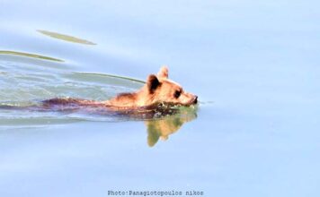 H θερμοκρασία ανεβαίνει και η αρκούδα στην Καστοριά… δροσίζεται!