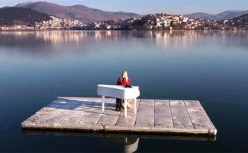 Καστοριά – Παίζει πιάνο στη μέση της λίμνης – [φωτογραφίες]