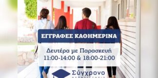 Φροντιστήριο Σύγχρονο – Οι εγγραφές ξεκίνησαν