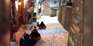 Στο χιονισμένο Νυμφαίο, τα παιδικά γέλια σπάνε τη σιωπή του χειμώνα...
