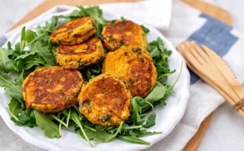 Ψητοί πατατοκεφτέδες με γλυκοπατάτα