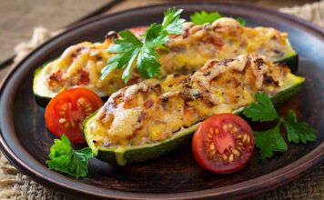 Κολοκυθάκια γεμιστά με κοτόπουλο και τυρί στον φούρνο – Με χρυσαφένια κρούστα