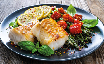 Φιλέτο μπακαλιάρου με σπαράγγια και βασιλικό