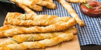 Κριτσίνια σφολιάτας με πιπεριά και πικάντικη φέτα