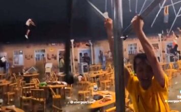 Καταιγίδα ξήλωσε τέντα σε εστιατόριο – “Πέταξαν” όσοι την κρατούσαν – [video]