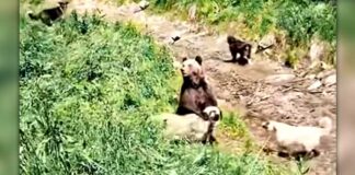 Αρκούδα αρπάζει πρόβατο – Μάχη με τα τσοπανόσκυλα – [video]