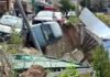 Η στιγμή που αυτοκίνητο πέφτει στο κενό στη Θεσσαλονίκη επειδή υποχώρησε...