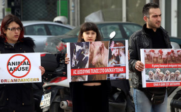 Φιλόζωοι με πλακάτ και συνθήματα κατά της Zootechnia στη Θεσσαλονίκη