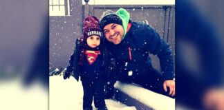 Ο μικρός Παναγιώτης Ραφαήλ στέκεται για πρώτη φορά στο χιόνι