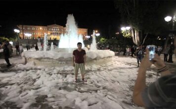 Πιτσιρικάδες έριξαν σαπούνι στο σιντριβάνι της πλατείας Συντάγματος και γέμισε αφρούς