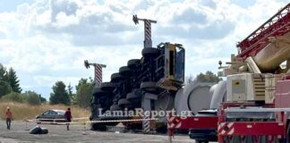 Ανετράπη γερανός που μετέφερε ανεμογεννήτριες – [video]
