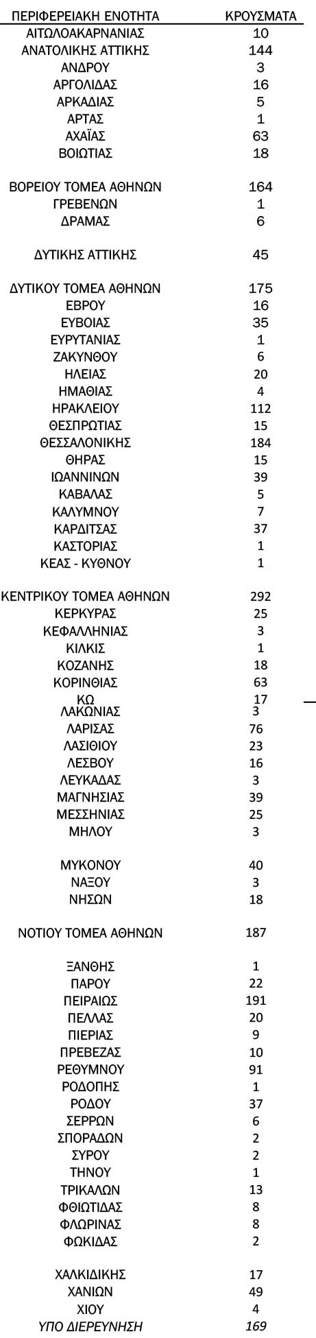 Τα 2.691 κρούσματα κορωνοϊού στην Ελλάδα, εντοπίστηκαν: