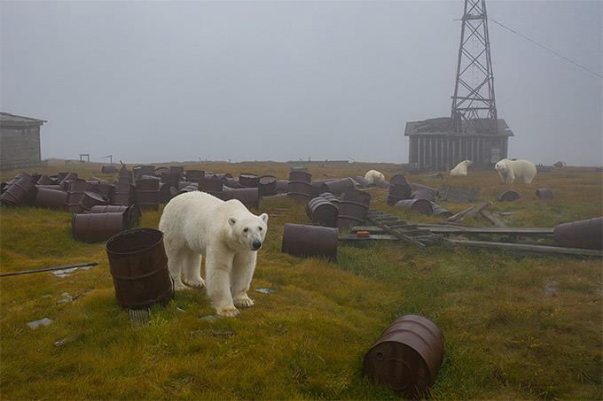 Στο πιο πρόσφατο του πρότζεκτ, λοιπόν, ο Ρώσος φωτογράφισε πολικές αρκούδες να έχουν εγκατασταθεί σε εγκαταλελειμμένο μετεωρολογικό σταθμό στον ρωσικό Αρκτικό Κύκλο.