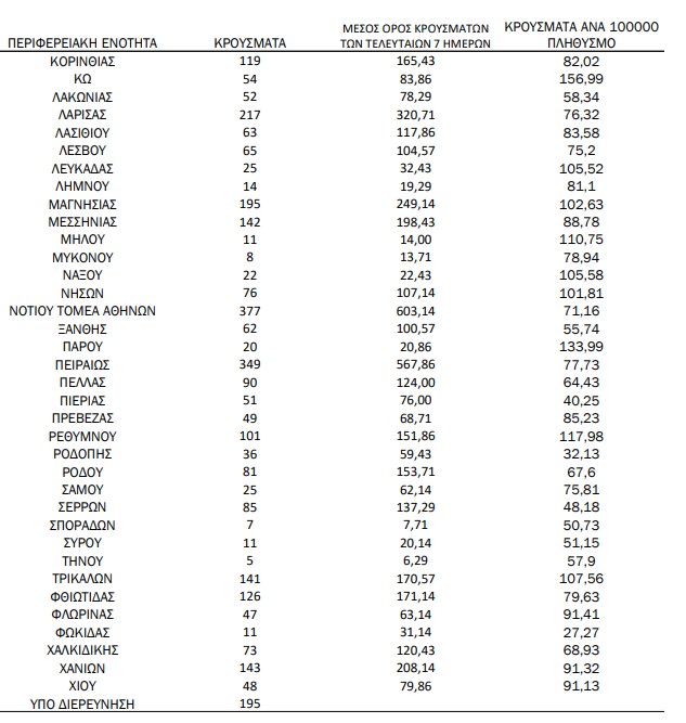 Τα 9.213 κρούσματα κορωνοϊού στην Ελλάδα, εντοπίστηκαν: