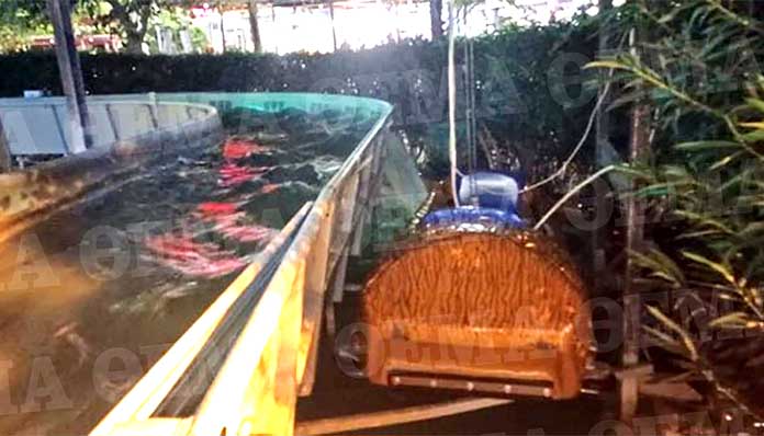 Όπως φαίνεται και στις εικόνες, το ατύχημα συνέβη όταν το τρενάκι νερού, στις εγκαταστάσεις των μεγάλων παιχνιδιών, δεν έκοψε την ταχύτητά του, εκσφενδονίζοντας το βαγόνι με τους τέσσερις επισκέπτες πάνω σε θάμνους.