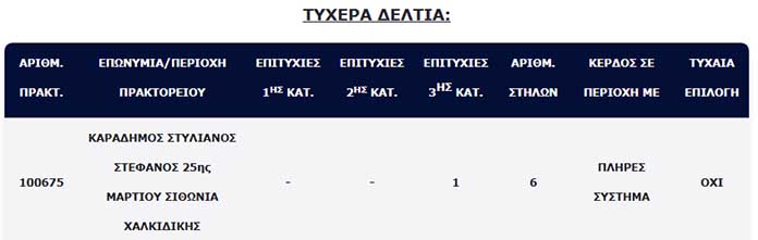 Ειδικότερα, στην χθεσινή κλήρωση είχαμε τζακ ποτ
