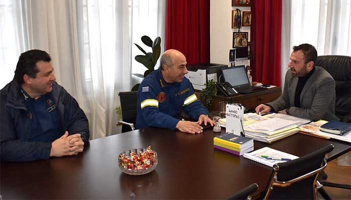 Κατά τη διάρκεια της συνάντησης, ο Δήμαρχος συνεχάρη τον Διοικητή για την προαγωγή του στον βαθμό του Πυράρχου στο πλαίσιο των κρίσεων του Πυροσβεστικού Σώματος και την ανάληψη των νέων καθηκόντων του.