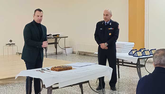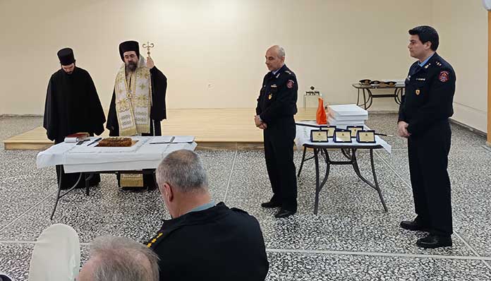 Κατά την τελετή απονεμήθηκαν αναμνηστικές τιμητικές πλακέτες σε απερχόμενους πυροσβεστικούς υπαλλήλους.
