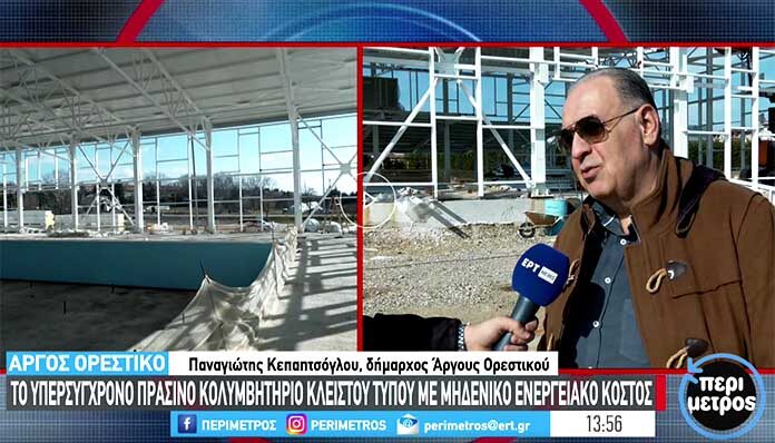 Ο δήμαρχος Άργους Ορεστικού, Παναγιώτης Κεπαπτσόγλου, μίλησε στην εκπομπή «Περίμετρο» της ΕΡΤ3 για το «πράσινο» κολυμβητήριο, και όπως είπε, αν όλα πάνε καλά, μέχρι το τέλος του χρόνου θα έχει δοθεί στο κοινό προς χρήση, ενώ τόνισε ότι άνθρωποι από όλο το νομό, μικροί και μεγάλοι ανυπομονούν για την ολοκλήρωση του έργου.