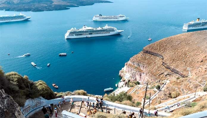 Λίγα πλοία που είχαν προγραμματίσει από νωρίς κρουαζιέρες στην Σαντορίνη έχουν αλλάξει δρομολόγιο με νέους προορισμούς την Σούδα και το Ηράκλειο στην Κρήτη. Άλλες εταιρείες προγραμματίζουν σε περίπτωση συνέχισης των σεισμικών δονήσεων στην περιοχή, να προσεγγίζουν στην Σύρο ή και στα νησιά των Δωδεκανήσων, αναλόγως με το μέγεθος των πλοίων και το αρχικό τους δρομολόγιο».
