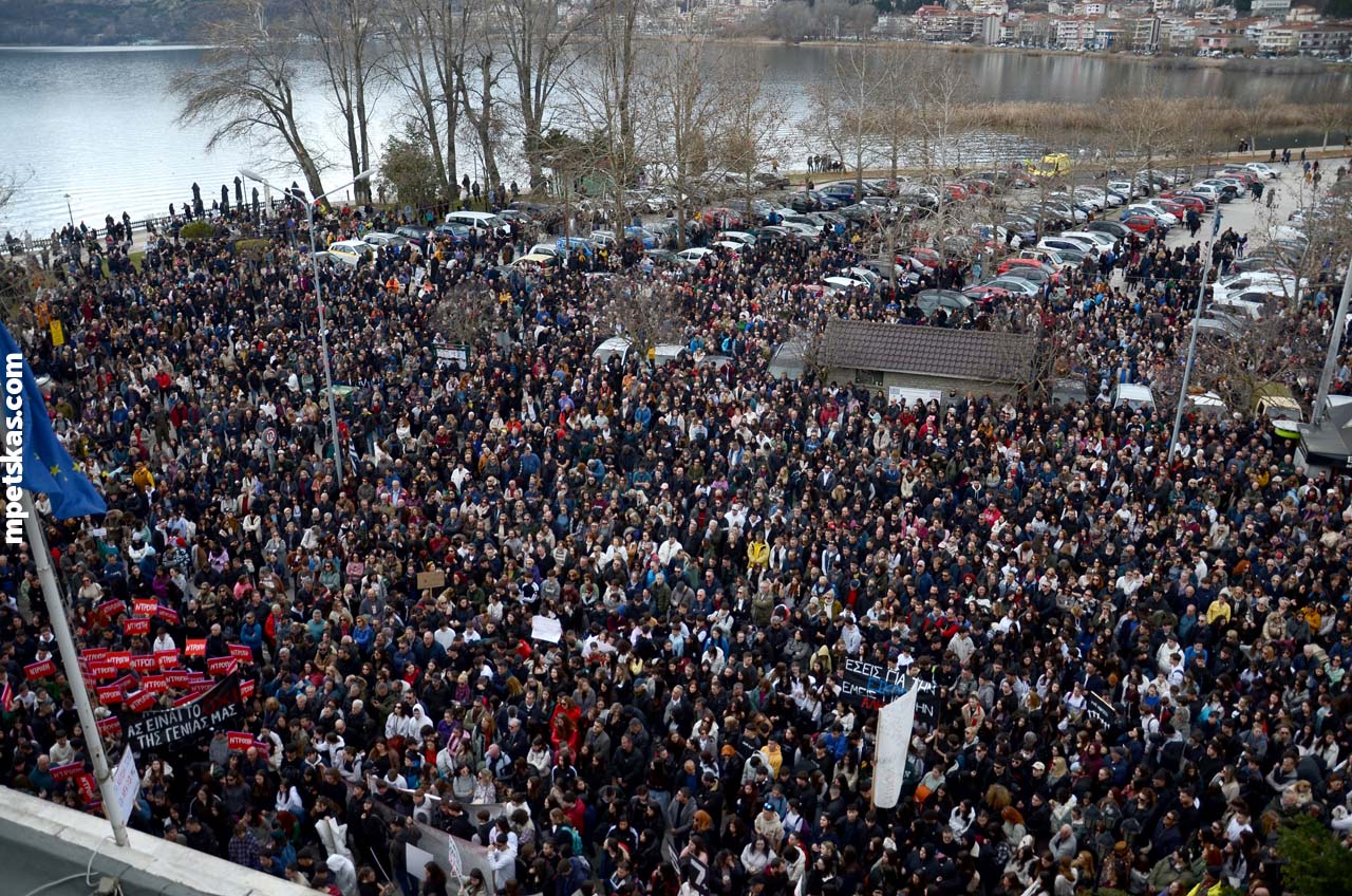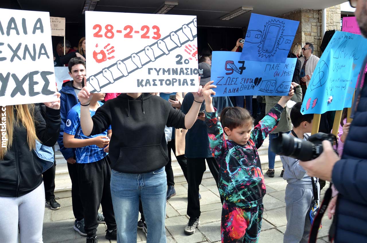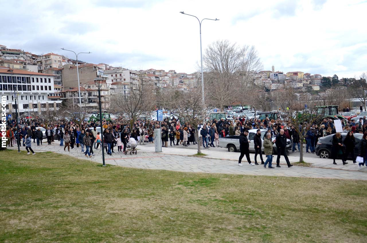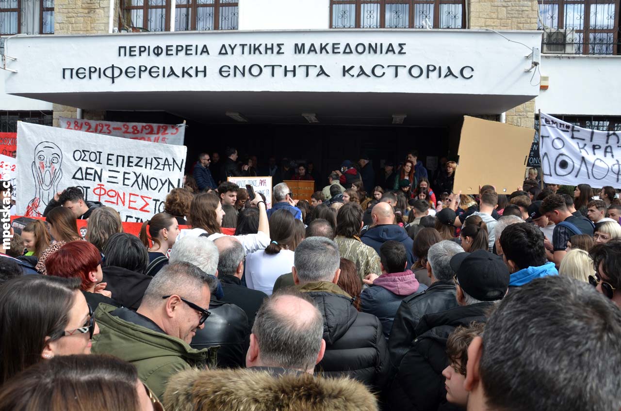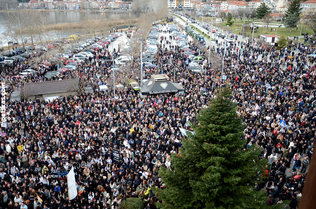 Από νωρίς, γονείς με τα παιδιά τους, φοιτητές, μαθητές και άνθρωποι κάθε ηλικίας πλημμύρισαν τον δρόμο μπροστά από την Αντιπεριφέρεια, δημιουργώντας τη μεγαλύτερη συγκέντρωση διαμαρτυρίας που έχει πραγματοποιηθεί ποτέ στην Καστοριά. Ο σκοπός ήταν ξεκάθαρος: να τιμηθεί η μνήμη των θυμάτων και να σταλεί ένα ηχηρό μήνυμα για δικαιοσύνη και ασφάλεια στους σιδηροδρόμους της χώρας.