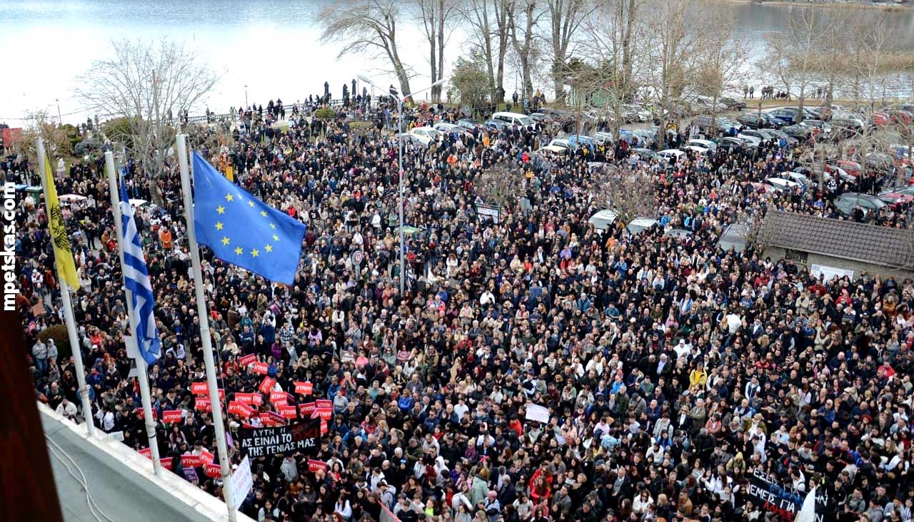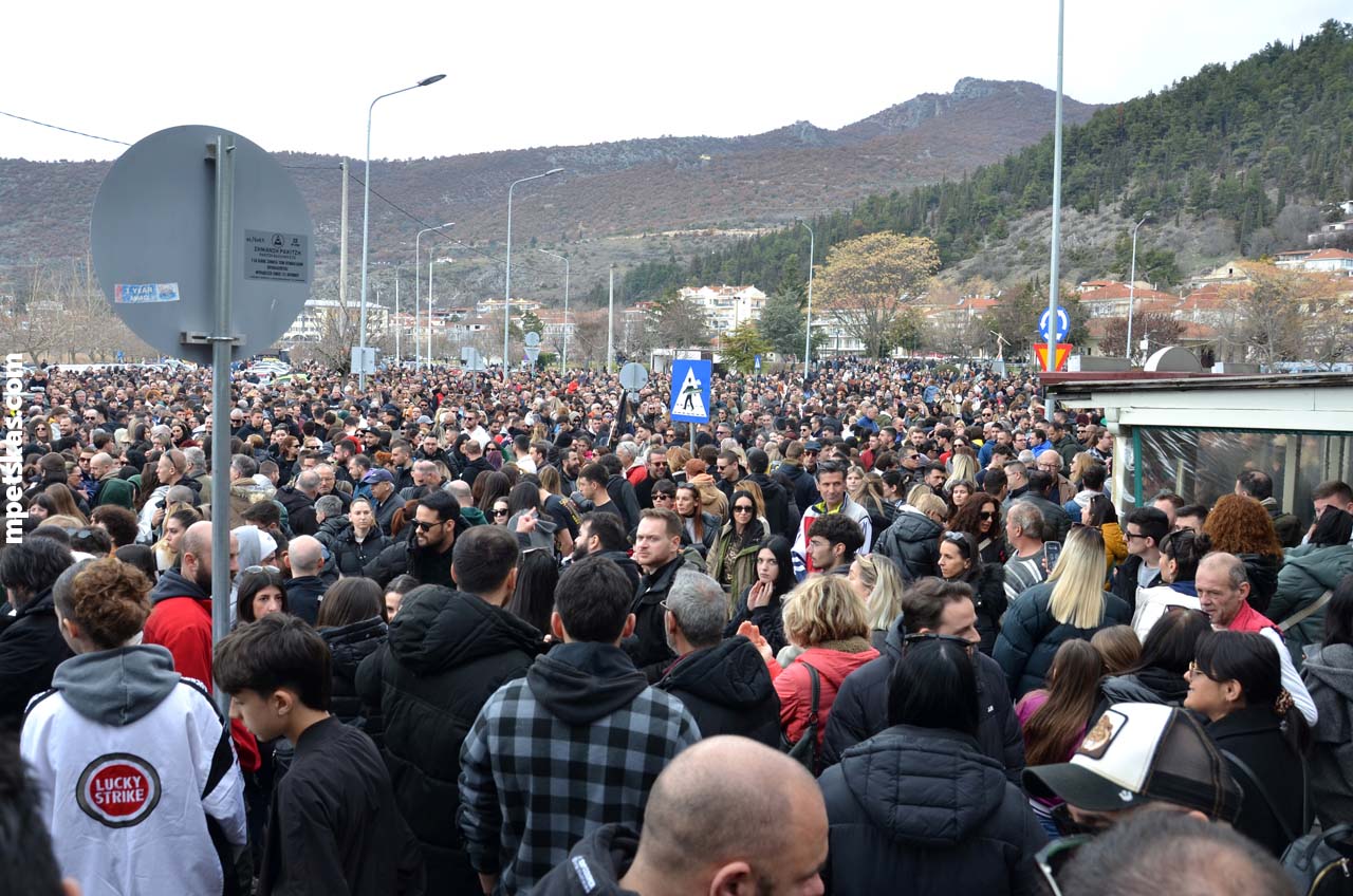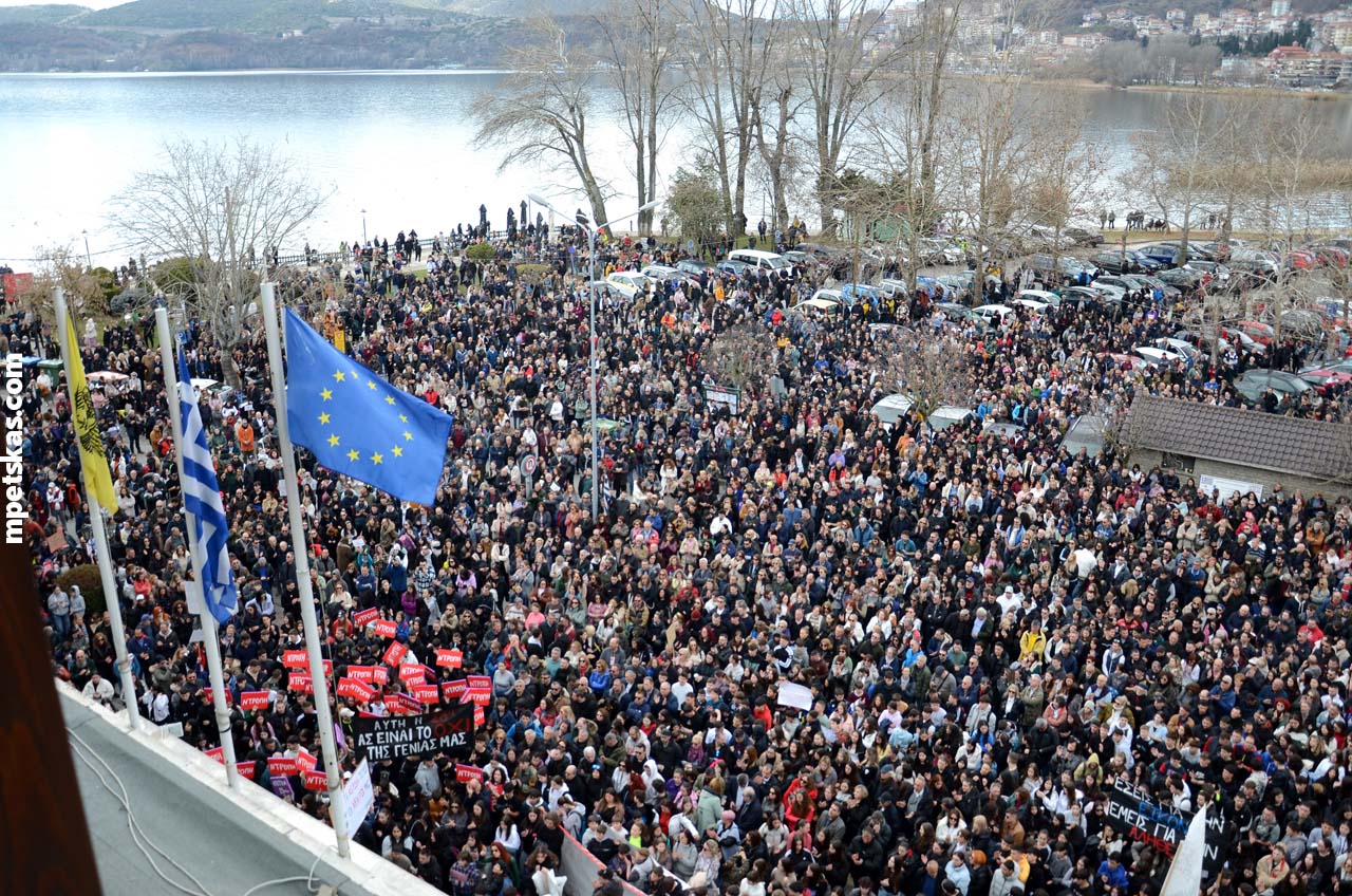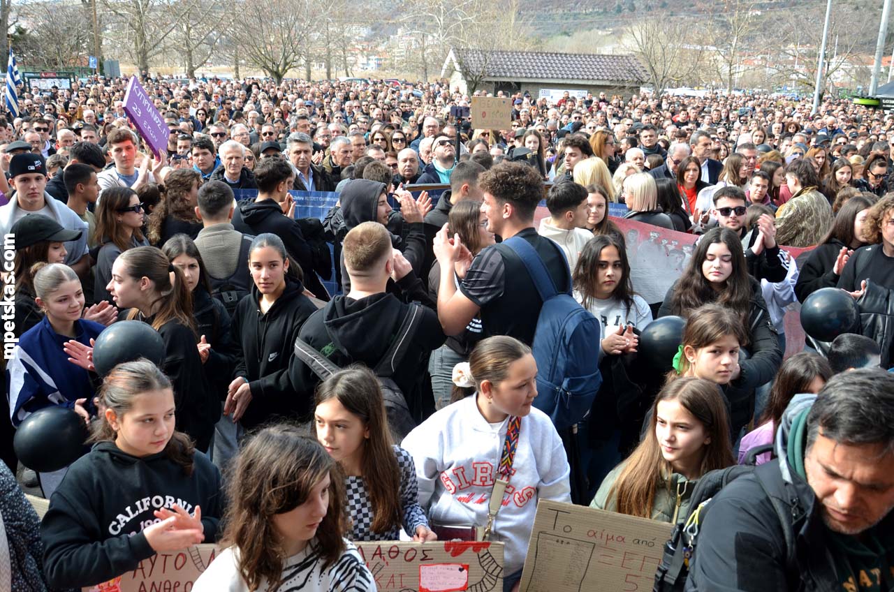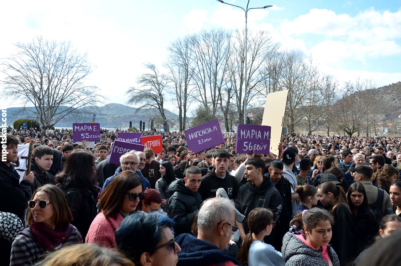 Από νωρίς, γονείς με τα παιδιά τους, φοιτητές, μαθητές και άνθρωποι κάθε ηλικίας πλημμύρισαν τον δρόμο μπροστά από την Αντιπεριφέρεια, δημιουργώντας τη μεγαλύτερη συγκέντρωση διαμαρτυρίας που έχει πραγματοποιηθεί ποτέ στην Καστοριά. Ο σκοπός ήταν ξεκάθαρος: να τιμηθεί η μνήμη των θυμάτων και να σταλεί ένα ηχηρό μήνυμα για δικαιοσύνη και ασφάλεια στους σιδηροδρόμους της χώρας.
