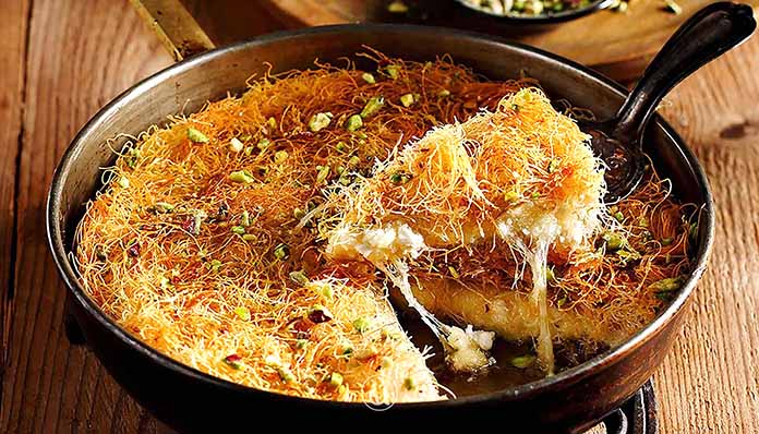 - Παραδοσιακά το κιουνεφέ στην Ανατολή, γίνεται σε τηγάνι και στο σερβίρουν καυτό, σιροπιάζοντάς το καυτό, μπροστά σου.