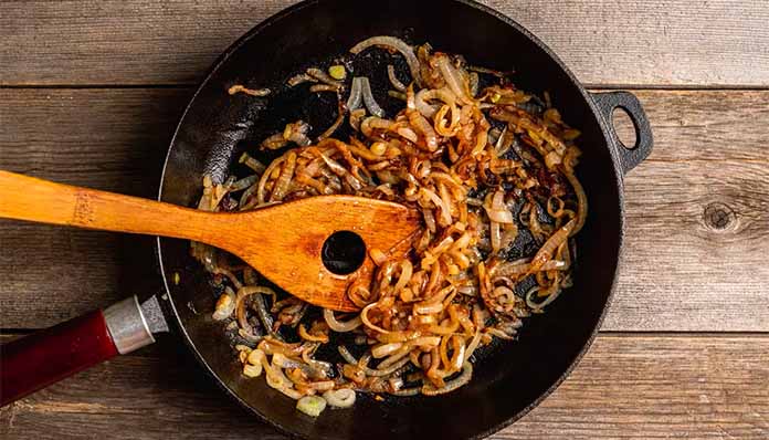 Η διαδικασία καραμελώματος περιλαμβάνει αργό μαγείρεμα σε χαμηλή φωτιά, ώστε τα φυσικά σάκχαρα των κρεμμυδιών να διασπαστούν και να αποκτήσουν ένα χρυσαφένιο χρώμα. Αυτό που χρειάζεστε, λοιπόν, είναι κρεμμύδια, ελάχιστο αλάτι και λίγο ελαιόλαδο, ωστόσο μπορείτε να εμπλουτίσετε τη συνταγή σας, αν το επιθυμείτε. Δείτε πώς.