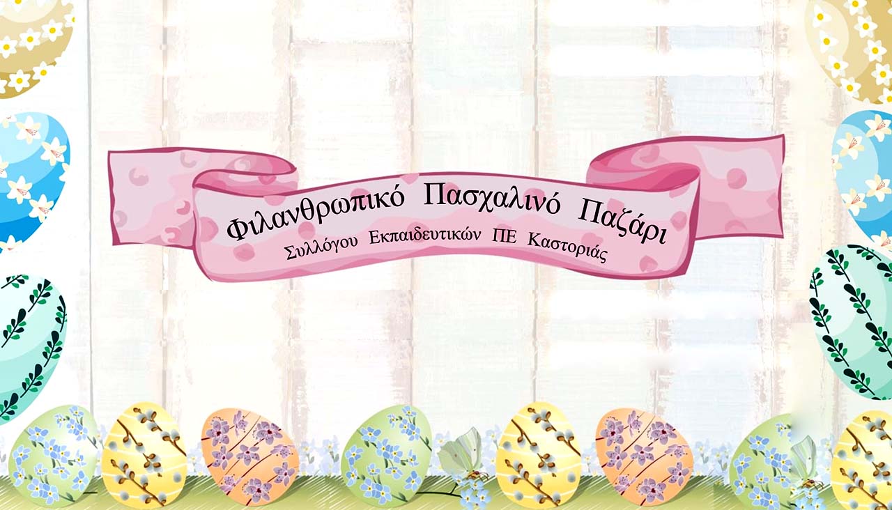 Ο Σύλλογος Εκπαιδευτικών Π.Ε. Ν. Καστοριάς πραγματοποιεί και καλεί τα μέλη του, καθώς και όλους τους πολίτες της Καστοριάς να στηρίξουν το πασχαλινό φιλανθρωπικό παζάρι του Συλλόγου μας, που θα πραγματοποιηθεί την Παρασκευή 11 Απριλίου 2025, ώρα 17:00 – 21:00 & το Σάββατο 12 Απριλίου 2025, ώρα 10:00π.μ. – 14:00 στον εξωτερικό χώρο μπροστά από το κτίριο της Αντιδημαρχίας Πολιτισμού, Αθ. Διάκου 1 (πιάτσα TAXI).