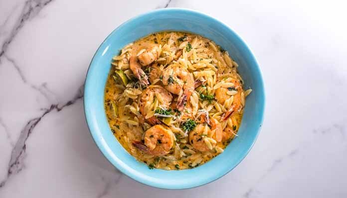 Στο τελευταίο λεπτό, προσθέστε τις γαρίδες και ανακατέψτε τες ελαφρώς.