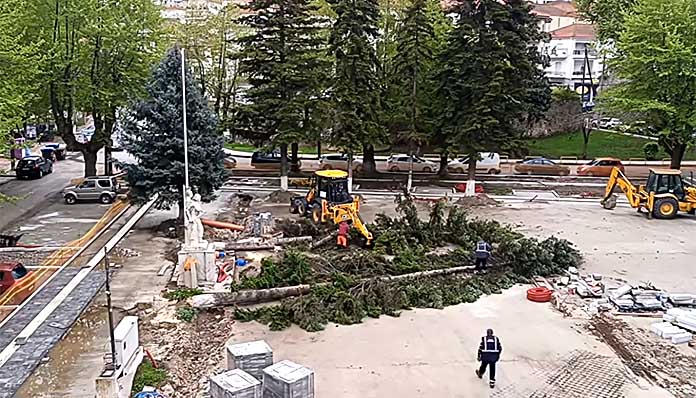 Δεν πέρασε πολύς καιρός από την έναρξη της αποψίλωσης της πλατείας, και σήμερα κόπηκαν κι άλλα δέντρα. Ναι, ακόμα περισσότερα. Στο όνομα της «ανάπλασης», η Καστοριά χάνει το πράσινό της, σιγά-σιγά αλλά σταθερά. Η εικόνα μιλά από μόνη της, κορμοί ριγμένοι στο χώμα, πριόνια σε δράση και μια σιωπηλή πόλη να βλέπει το έγκλημα να συνεχίζεται.