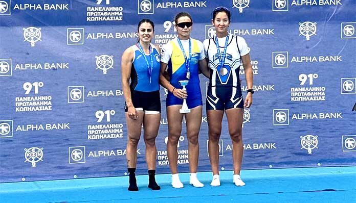 Τρεις ολυμπιονίκες στο βάθρο του ίδιου αγωνίσματος στο 91ο Πανελλήνιο πρωτάθλημα Κωπηλασίας. Νικήτρια στον τελικό του σκιφ γυναικών, η Ευαγγελία Αναστασιάδου του ΝΟ Καστοριάς στη 2η θέση η Ζωή Φίτσιου του ΝΟ Μαυροχωρίου και στην 3η η Μηλένα Κοντού του ΝΟ Μυτιλήνης.