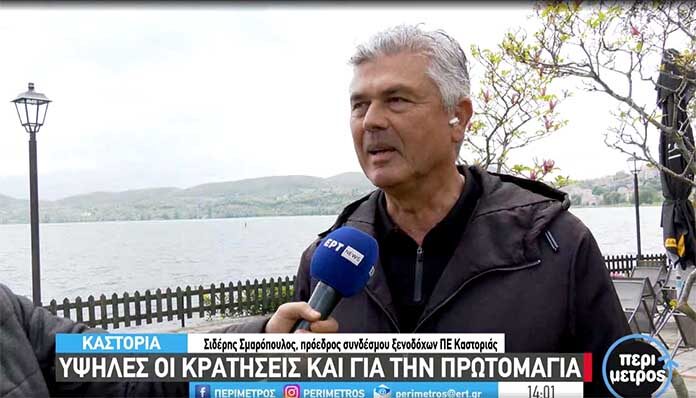 Ο πρόεδρος του Συνδέσμου Ξενοδόχων της Περιφερειακής Ενότητας Καστοριάς, Σιδέρης Σμαρόπουλος, μιλώντας στην ΕΡΤ3 και την εκπομπή Περίμετρος τόνισε πως «ήταν πολύ πετυχημένη η περίοδος του Πάσχα, όπως είναι πετυχημένα ουσιαστικά όλα τα τριήμερα και οι υψηλές περίοδοι ζήτησης στην πόλη μας και στην περιοχή μας και είμαστε απόλυτα ικανοποιημένοι από την κίνηση αυτή, που επετεύχθη. Περιμένουμε τις επόμενες μέρες, περιμένουμε το επόμενο τριήμερο, που είναι αυτό της Πρωτομαγιάς, στο οποίο και η κίνηση εκεί είναι ιδιαίτερα υψηλή».