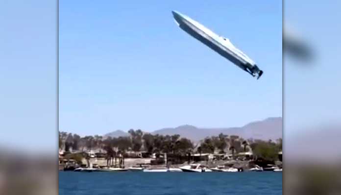 Ένα τρομακτικό ατύχημα το οποίο ως εκ θαύματος δεν προκάλεσε κάποιον τραυματισμό, σημειώθηκε σε αγώνα με ταχύπλοα σε λίμνη στη Νεβάδα των ΗΠΑ όταν ένα από τα σκάφη κυριολεκτικά πέταξε στον αέρα ενώ είχε αναπτύξει ταχύτητα 320χλμ/ώρα.