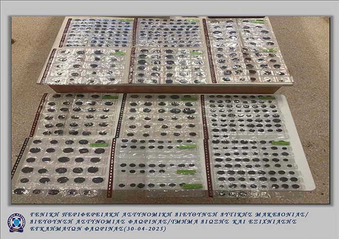 Μεγάλη ποσότητα αρχαίων νομισμάτων, καθώς και -4- μεταβυζαντινές εικόνες που χρονολογούνται στα μέσα και στα τέλη του 19ου αιώνα, βρέθηκαν και κατασχέθηκαν σε οικία στη Φλώρινα, από αστυνομικούς του Τμήματος Δίωξης και Εξιχνίασης Εγκλημάτων Φλώρινας