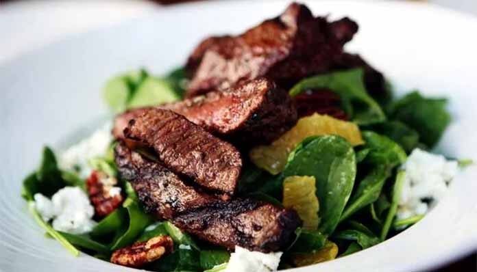 Παίρνετε 130 γραμμάρια μοσχαρίσιος κιμάς (που έχει τραφεί με γρασίδι και άρα είναι εξαιρετική πηγή Κ2), με 1 φλιτζάνι σπανάκι (ή ανάμεικτα φυλλώδη λαχανικά που έχουν αντιοξειδωτικά), ½ φλιτζάνι μανιτάρια κομμένα σε φέτες (προτιμήστε portobello ή maitake που είναι πλούσια σε βιταμίνη D), 14 γραμμάρια παλαιωμένο τυρί τριμμένο (γκούντα ή τσένταρ), μισό αβοκάντο κομμένο σε φέτες (για τα υγιή λίπη και την απορρόφηση λιποδιάλυτων βιταμινών) και ντρέσινγκ ελαιόλαδο με λίγο βαλσάμικο.