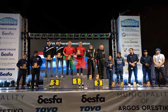 Στην κορυφή της γενικής κατάταξης του FIA WORLD BAJA CUP βρέθηκαν οι Πορτογάλοι Tiago Reis και Paulo Fiuza με Taurus T3 MAX, επιβεβαιώνοντας την κυριαρχία τους σε έναν αγώνα υψηλών απαιτήσεων. Τη δεύτερη θέση κατέλαβαν οι Mitchel Van den Brink – Bart Van Heun (BRP CanAm Maverick), ενώ την τριάδα συμπλήρωσαν οι Miroslav Zapletal – MarekSykora με Ford F150 EVO.