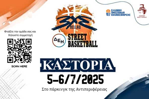 Ο Δήμος Καστοριάς και η Ελληνική Ομοσπονδία Καλαθοσφαίρισης ενώνουν τις δυνάμεις τους και φέρνουν στην Καστοριά το «ΔΕΗ 3X3 Street Basketball».
