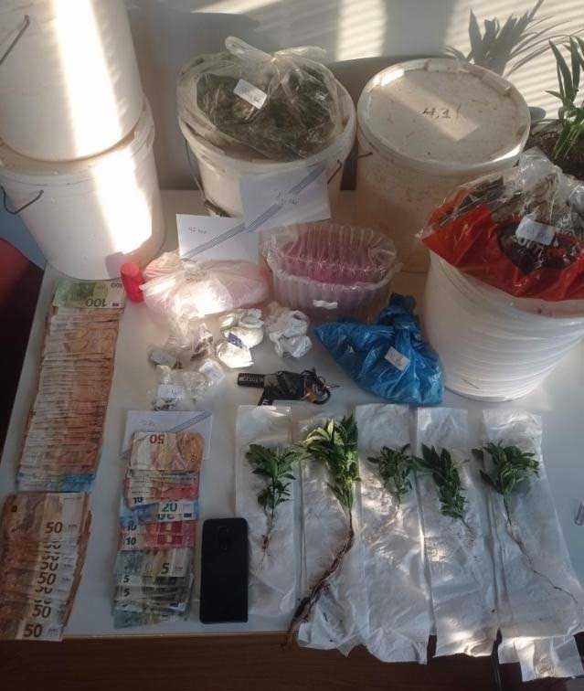 Στους χώρους που χρησιμοποιούσε ο συλληφθείς βρέθηκαν και κατασχέθηκαν συνολικά 558 γραμμάρια κάνναβης, μικροποσότητα κοκαΐνης, καθώς και το χρηματικό ποσό των 3.395 ευρώ, μέρος του οποίου είχε κρύψει στο συρτάρι με τα μαχαιροπίρουνα. Επίσης, από την έρευνα των αστυνομικών διαπιστώθηκε ότι ο 33χρονος καλλιεργούσε δενδρύλλια κάνναβης σε παραλίμνια περιοχή του Βαθυλάκκου.