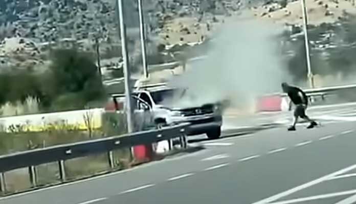 Από τη φωτιά προέκυψαν υλικές ζημιές στο όχημα ενώ δεν φαίνεται να υπήρξε κίνδυνος για τους επιβαίνοντες.
