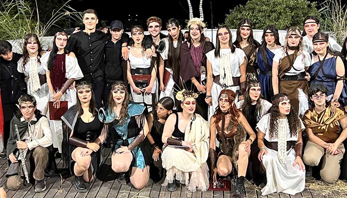 Το Διονυσιακό στοιχείο εμφανίζεται έντονα τόσο από την ερμηνεία των μαθητών όσο και από την ιδιαίτερη αισθητική των κουστουμιών και των πρωτότυπων μουσικών συνθέσεων.