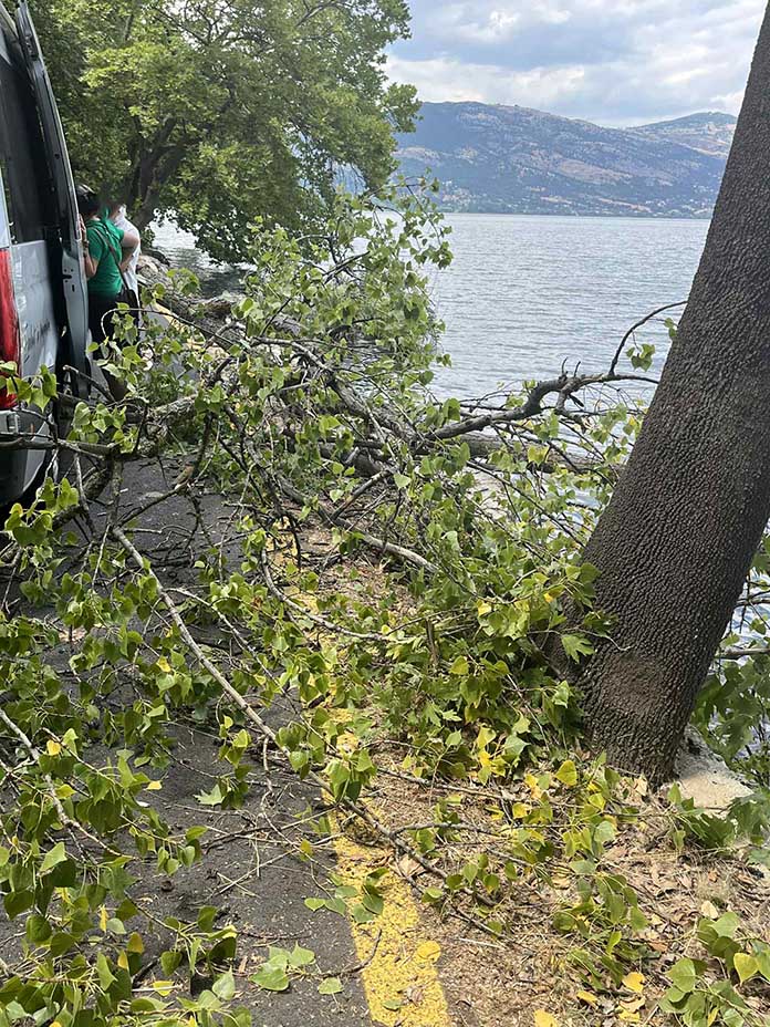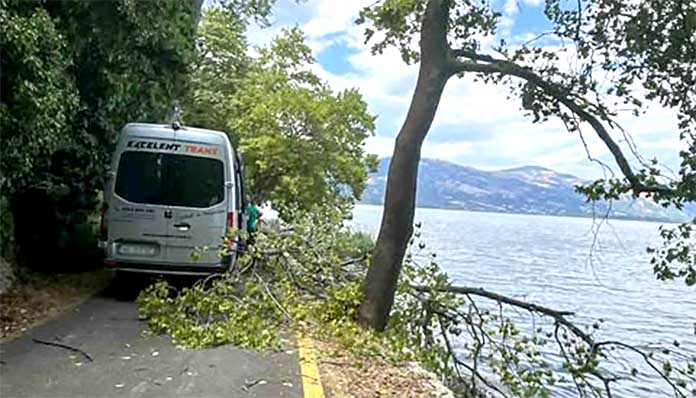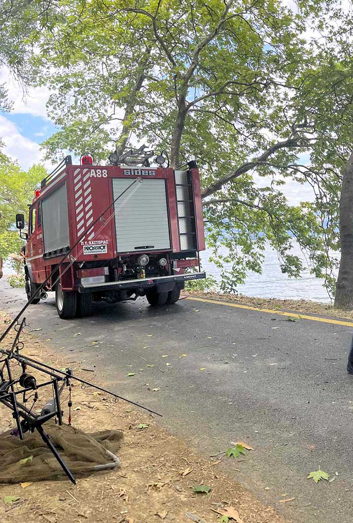 Το δέντρο δεν προκάλεσε ζημιές μόνο στο αυτοκίνητο του επισκέπτη, αλλά έπληξε και τον εξοπλισμό τοπικών ψαράδων που βρισκόταν κοντά στη λίμνη.