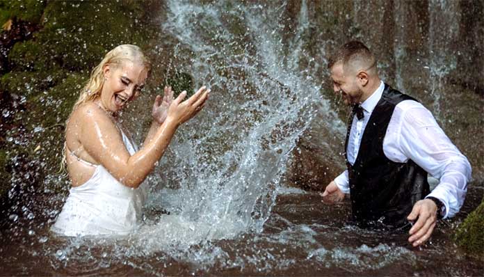 Η γαμήλια φωτογράφιση έχεις μόλις αρχίσει, με τους νεόνυμφους να κινούνται με χαλαρούς ρυθμούς στο σκηνικό. Η νύφη δεν αγχώνεται μήπως πατήσει ή λερώσει το λαμπερό φόρεμά της, ούτε ο γαμπρός μήπως τσαλακώσει το κοστούμι του. Αυτά θα γίνουν έτσι και αλλιώς κι επιπλέον το ζευγάρι θα χρειαστεί …στέγνωμα καθώς τα γαμήλια «κλικ» περιλαμβάνουν ορμητικά νερά -για την ακρίβεια καταρράκτες! Λίγο οι ζεστές ημέρες, λίγο η φαντασία των φωτογράφων και η επιθυμία των ζευγαριών να ποζάρουν σε τρεχούμενα νερά και φυσικές πηγές στη Βόρεια Ελλάδα έχουν εξελιχθεί σε viral τάση. Τα λουτρά του Πόζαρ, οι καταρράκτες της Έδεσσας και της Βαρβάρας στη Χαλκιδική βρίσκονται στη λίστα με τα πιο δημοφιλή σημεία για γαμήλια καρέ, γεγονός που κάνει τους τουριστικούς φορείς των περιοχών να βλέπουν με …καλό μάτι τη νέα τάση.