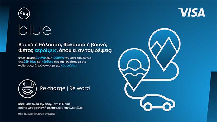 Καλοκαιρινές φορτίσεις με προνόμια από τη ΔΕΗ blue και τη Visa