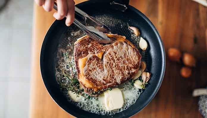 Στο μάτι, είτε σε κατσαρόλα, είτε σε τηγάνι με ελάχιστο λάδι ή βούτυρο, το κρέας θα είναι σε επαφή με μέταλλο, που κατά τεκμήριο θα έχει ανέβει στους 160°C και έτσι η θερμότητα θα περνά γρήγορα και άμεσα στην επιφάνειά του. Έτσι μέσα σε 2’-3΄ λεπτά θα έχει κάνει την επιθυμητή κρούστα απ’ έξω, που είναι γεμάτη νοστιμιά (αντιδράσεις Μαγιάρ).